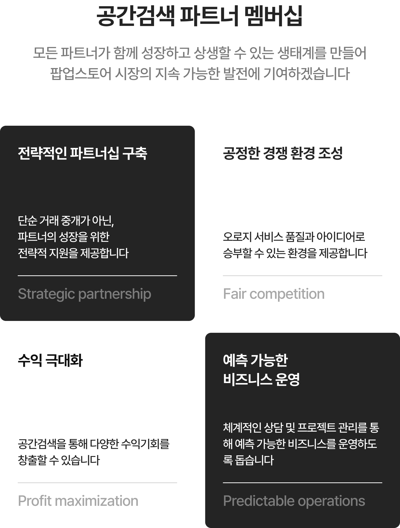 공간검색에 파트너로 가입하시면 상품 등록 • 홍보 • 견적 등의 서비스를 이용하실 수 있습니다.